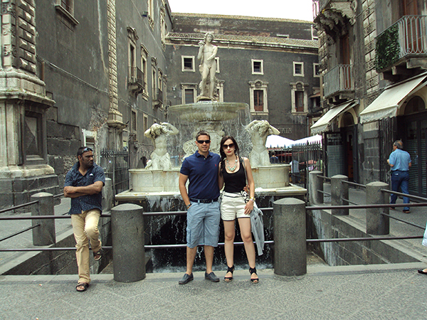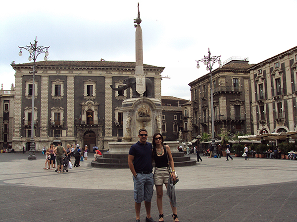 Al día siguiente nos despertamos y el barco ya se encontraba en el puerto de Catania, comenzamos el desembarque, nos desplazamos hasta la Plaza Duomo, en el centro de esta plaza se encuentra una fuente con la escultura de un elefante encima, fue diseñada en 1736. La fuente representa tres civilizaciones.