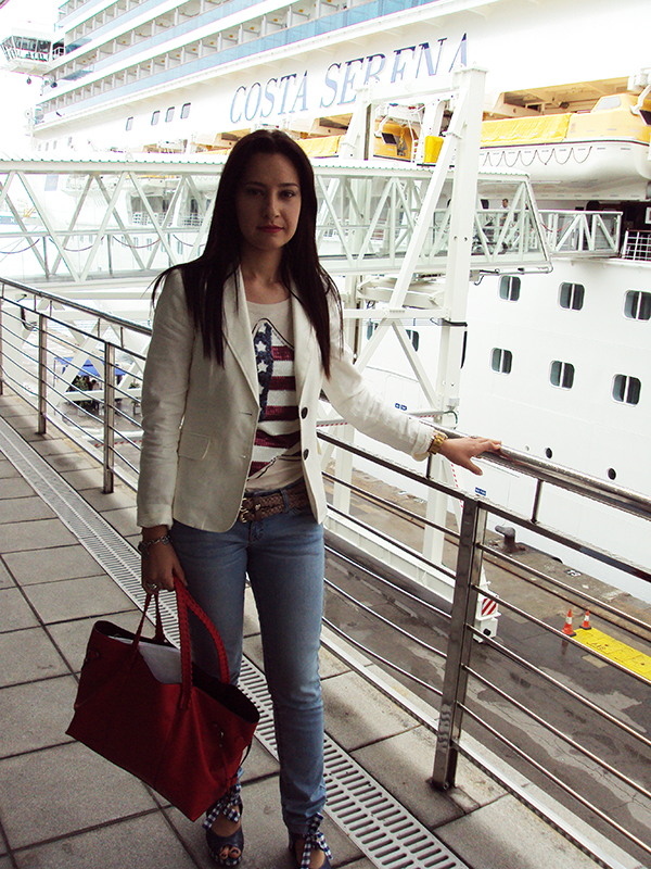 Salimos de casa con dirección al aeropuerto de Almería donde cogimos un avión operado por la compañía aérea Vueling con dirección al aeropuerto de Barcelona-El Prat. El viaje tuvo una duración de 1 h y 10 minutos. Cuando aterrizamos en el aeropuerto recogimos el equipaje y cogimos un taxi para desplazarnos hasta el puerto marítimo, una vez allí nos acercamos a unos mostradores habilitados por la compañía Costa Cruceros, donde nos identificamos y nos gestionaron la tarjeta magnética necesaria para embarcar. Ya sí, embarcamos en el crucero Costa Serena. Aquí comenzaban nuestras vacaciones en el mar.