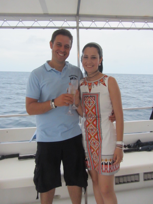Almorzamos y por la tarde tomamos un catamarán para ir a contemplar los delfines mar adentro, vimos el atardecer en la embarcación brindando con una copa de champán, también ofrecían zumos. Esta excursión nos la ofreció el hotel gratuitamente a los huéspedes que nos encontrábamos en él.