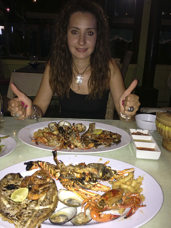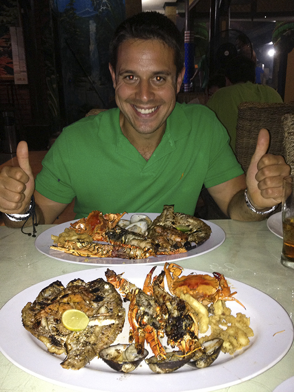 Y por último, nos desplazamos a la Playa de Jimbaran, esta es una playa muy turística de aguas cristalinas y arena fina dorada. Es conocida por los restaurantes que hay allí, donde ofrecen una gran variedad tanto en pescados y mariscos frescos. Cada noche en las orillas de esta playa, los restaurantes de la zona colocan mesas, ofrecen exclusividad a sus clientes. Cenamos a base de marisco en el restaurante Ocean Jimbaran.