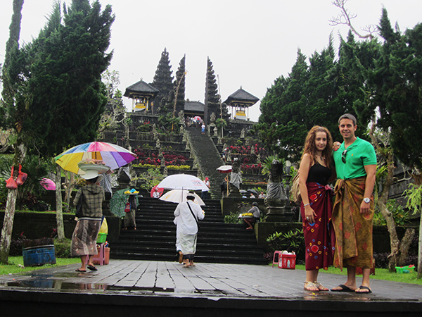 Desayunamos, una vez terminada la comida, salíamos del hotel con dirección al Templo Madre de Besakih, ubicado al pie del volcán Gurung Aung, es el más grande y sagrado de los templos de Bali. Está compuesto por veintidós templos diferentes. Fue construido a finales del siglo VIII. Podréis entrar por vuestra cuenta, no necesitaréis un guía o acompañante. Simplemente, tenéis que poneros un pareo que os cubra piernas (mujeres y hombres), lo podréis comprar o alquilar allí o bien llevar uno vuestro. Abierto todos los días de 8:00 h a 17:00 h La entrada general a nosotros nos costó 7.500 rupias por persona (0,54 € aproximadamente). Se sitúa en Desa Besakih, Kec. Rendang, Karangasem, Karangasem, Kabupaten Karangasem.
