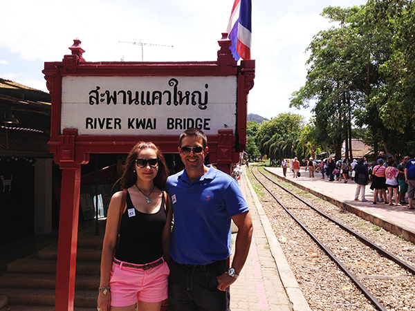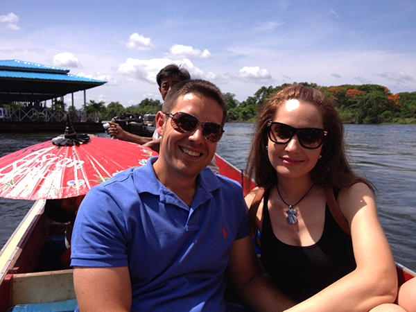 Nos levantamos temprano en la mañana, desayunamos y una vez terminado la comida, abandonábamos la ciudad de Bangkok, tomando la dirección Kanchanaburi, que se encuentra a 50 km de Bangkok. Aquí está el puente sobre el río Kwai. En el año 1942, durante la Segunda Guerra Mundial, los japoneses obligaron a construir este puente a los prisioneros de guerra aliados y asiáticos. Un gran porcentaje de presos que trabajaron en esta construcción murieron a causas de maltratos, enfermedades, etc.