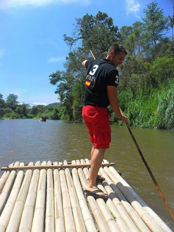 Realizamos un descenso por el río con balsas de bambú. Estuvo genial, reímos y pasamos un buen rato.