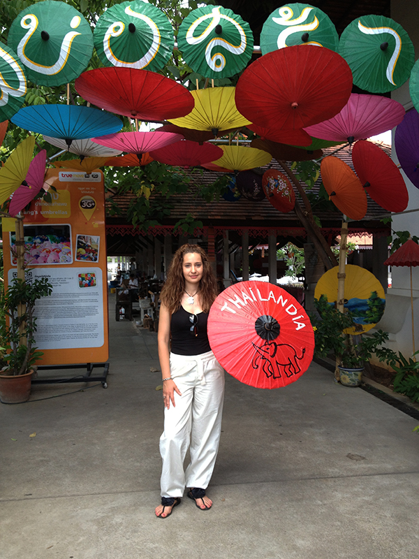 Después nos marchamos a visitar las instalaciones de una fábrica de sombrillas, donde nos explicaron y contemplamos los diferentes pasos que conllevan su proceso de fabricación. Adquirimos esta bonita sombrilla que la diseñe a mi gusto, yo, Elisabeth. Me costó 3 dólares americanos (2,77 € aproximadamente).