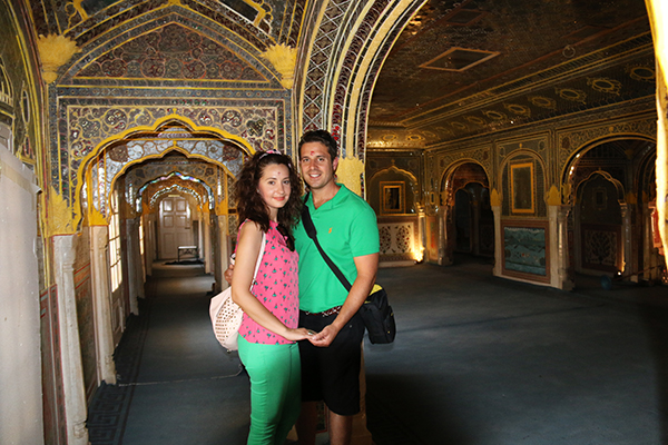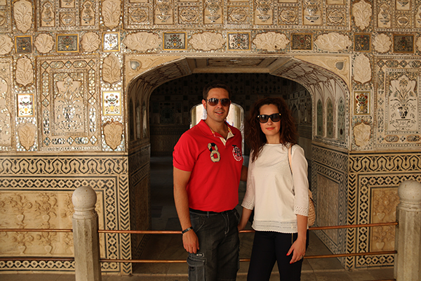 Por la mañana nos levantamos, desayunamos, poníamos rumbo hacia el Palacio de Samode. Se encuentra a 40 kilómetros al norte de Jaipur. Está construido en piedra arenisca. En el interior su suelo es de mármol, columnas ornamentales, paredes llenas de mosaicos, etc. A nosotros no nos permitieron la entrada a todas sus salas, ya que se estaba rodando una serie y tenían una zona cortada a las visitas. Almorzamos en el restaurante de su interior, con estilo de la época. Nos hizo trasladarnos al pasado por unos minutos, nos encantó el lugar. Se encuentra en Samode Village, Tehsil Chou, Jaipur, Rajasthan.