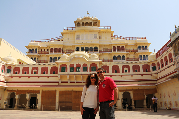 Continuamos hacia el Palacio y su Museo de Jaipur, localizado en la ciudad de Jai Singh II. Fue comenzado a construirse entre 1729 y 1732 por el mandato de Maharaja Jai Singh II, el cual planifico y construyó los muros exteriores, otros gobernadores que le sucedieron fueron construyendo más edificios hasta el siglo XX. Su arquitectura es una mezcla Mongol y Rajpur. Ha sido residencia de los gobernantes desde el siglo XVIII. Hoy en día vive el Maharaja. Es un palacio de grandes dimensiones, no todas las zonas están abiertas al público. Visitamos el Mubarak, que es el museo de textil donde encontramos una gran exposición de ropa de la época. Contemplamos colecciones de armas, nos adentramos en el edificio de las audiencias privadas. Recorrimos su patio Pritam Niwas Chowk. Pudimos contemplar una gran colección de carruajes de diferentes épocas. Abierto de 10:00 h a 17:00 h La entrada nos costó 180 rupias por persona (2,48 € aprox.) por hacer uso de cámara de fotos son 100 rupias (1,38 € aprox.) cámara de vídeo 200 rupias (2,76 € aproximadamente). Se encuentra en Jaipur-302002 Rajasthan.