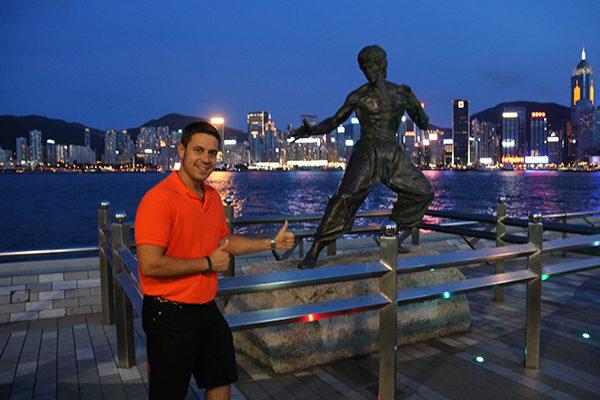 Pasamos más tarde y fotografiamos la zona de la Avenida de las Estrellas, donde se encuentran figuras de los actores más famosos chinos como: Jackie Chan, Bruce Lee, etc. El acceso es gratuito, espacio al aire libre. La dirección es Waterfront Podium Garden, Tsim Sha Tsui East.