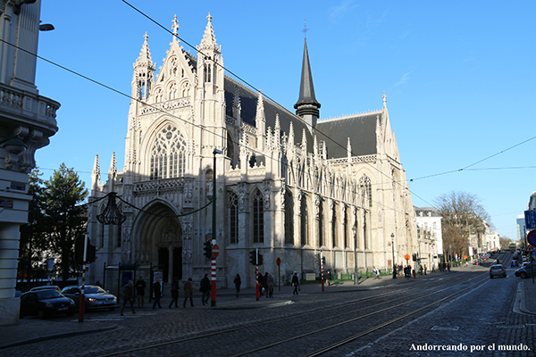 Luego visitamos la Catedral de Notre Dame, construida en el siglo XV, es de estilo gótico. En el interior destaca el púlpito de madera labrado que corresponde al año 1697. Horario de visitas de lunes a viernes de 9:00 h a 18:30 h, sábados y domingos de 10:00 h a 19:00 h. La entrada es gratuita. Se encuentra en Place du Grand Sablon. En frente de esta iglesia se encuentra el Jardín de Petit Sablón, una plaza rectangular con jardines, árboles, flores, fuentes, estatuas, bancos, etc.