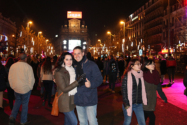Nos desplazamos a Mont des Arts, donde tuvo lugar una cabalgata con espectáculos musicales a lo largo de la avenida. En la zona donde se junta la Avenida Brouckere Plein con Anspachlaan, había una pantalla gigante que marcaba el tiempo restante para entrar en el nuevo año. La avenida se llenó completamente de gente y cuando el reloj marcó las 00:00 h, comenzó un espectáculo de fuegos artificiales, que duró unos 30 minutos. Así fue la entrada del nuevo año en Bruselas. Luego siguió la fiesta con música, la gente bailando y bebiendo en la calle.