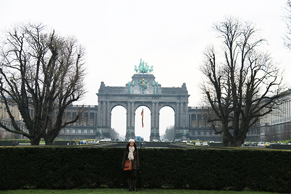 Nuestra última visita de ese día fue el exterior del Palacio del Cincuentenario, construido para celebrar 50 años del nacimiento del país de Bélgica como nación independiente. Alberga tres museos: el Museo Cincuentenario, el Militar y el Autoworld. Fotografiamos su arco de triunfo, muy parecido al de Berlín. Caminamos por su parque urbano público, está compuesto por 30 hectáreas, es el espacio verde más grande de la ciudad de Bruselas. Se sitúa en Jubelpark.