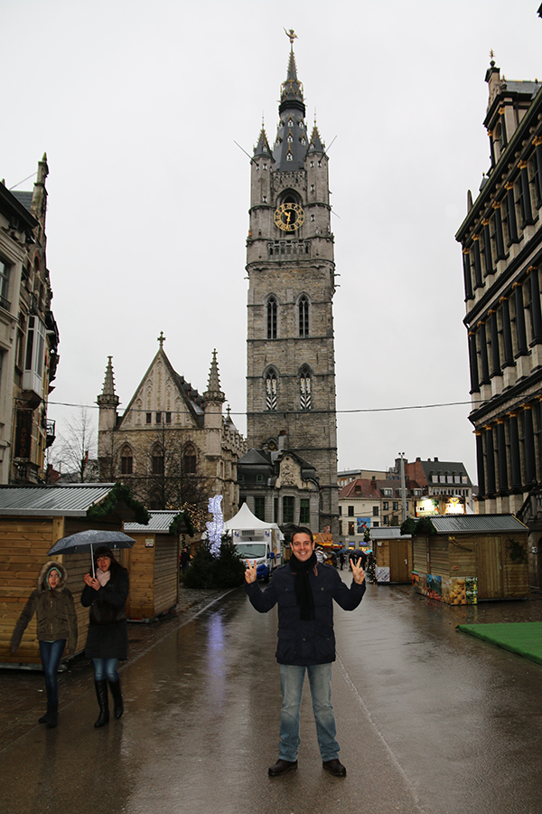 Pasamos por Korenmarkt, es una plaza, el lugar más animado de Gante. La lluvia no nos dejaba, comenzó a caer fuerte y nos tuvimos que ver obligados a resguardarnos en un local unos minutos hasta que dejó de llover con tanta intensidad.