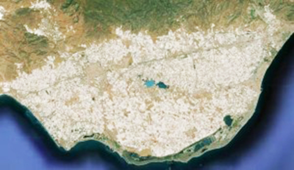 ¿Sabías qué los campos de invernaderos de toda la provincia de Almería, incluyendo El Ejido, es casi la única obra hecha por el ser humano que es visible desde el espacio? El astronauta español Pedro Duque pudo observar desde el Discovery este mar de plástico, el motivo por el que se distingue claramente es porque el plástico de su estructura refleja la luz como un cristal.