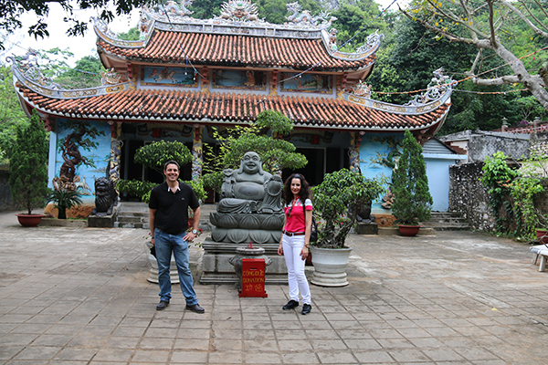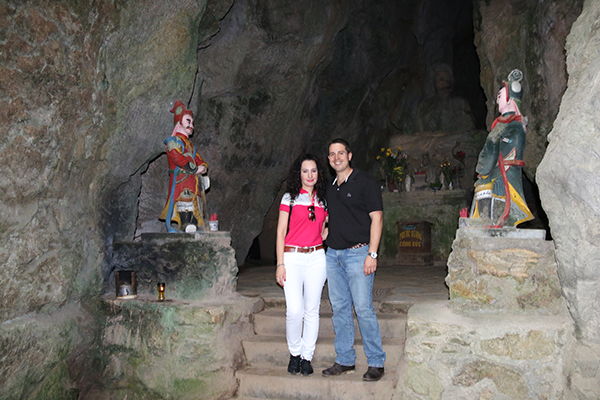 Justo por la parte de atrás se localiza la Cueva Tang Chan, se accede por un túnel oscuro. Una vez dentro pudimos contemplar dos altares con grandes budas. Continuamos hasta la Cueva Van Thong, entrar en su interior es complicado por el goteo de agua, que hace que resbalar y caerte sea algo normal. Nosotros nos saltamos su visita al interior y seguimos hacia Cueva Hoa Nghiem, donde se localiza la imagen de Quan Am Thi Kinh (buda Mujer). Continuamos hacia la Cueva Huyen Khong, es como una catedral budista. Fue utilizada como hospital durante la Guerra de Vietnam por el Viet Cong. Se pueden contemplar varios altares con figuras de buda. Pero al fondo se puede ver un gran buda de mármol blanco. Fotografiamos y contemplamos la Pagoda Tam Thai, construida en el año 1630, se ha visto obligada en varias ocasiones a tener que restaurarla. En la parte delantera de la pagoda se encuentra un gran buda blanco sentado sobre una flor de loto. Entramos en la Cueva Linh Nham, en su interior hay pequeños altares repletos de ofrendas que dejan los peregrinos que visitan el lugar.