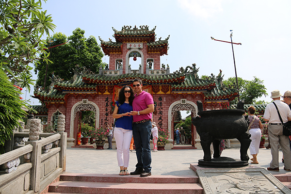Salimos por la mañana del hotel para visitar Hội An y contemplamos las antiguas casas. Para poder acceder al interior de los monumentos y de los sitios representativos de la ciudad hay que comprar una entrada conjunta que te permite visitar cinco sitios. La puedes obtener en cualquier oficina de turismo, encontrarás varias por toda la ciudad. El ticket nos costó 120.000 dongs por persona (4,95 € aproximadamente). ¡Ojo!, en el casco histórico está totalmente prohibido la entrada de coches.