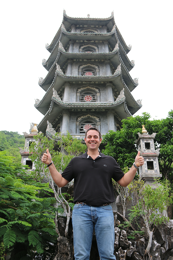 Nos levantamos, antes de que sonara el despertador, bajamos a desayunar al comedor una vez acabada la comida, abandonamos el hotel en el que estábamos hospedados para salir por carretera a Hội An. Hicimos una ruta y visitamos la Montaña de Mármol de Danang, donde se encuentra un santuario budista en una cueva. La Montaña del Mármol, está formada por cinco montañas, sus nombres representan los cinco elementos: Thuy Son (agua), Tho Son (tierra), Hoa Son (fuego), Kim So (metal), Moc Son (madera). Nosotros solo visitamos Thuy Son (agua), es la más grande. Cuenta con una superficie de 15 hectáreas constituida por tres picos rocosos, es la más visitada por turistas y viajeros. Hoy en día no se extrae piedra de la montaña. Abierto desde las 7:00 h hasta las 17:00 h Para subir hasta Thuy Son hay dos formas, subiendo por las tradicionales escaleras de piedra o subir mediante un ascensor, esta segunda opción tiene un suplemento de 30.000 dongs por persona (1,24 € aproximadamente). Cuando compras la entrada te dan un mapa turístico del lugar. El ticket de Thuy Son nos costó 15.000 dongs por persona (0,63 € aproximadamente) el resto son de acceso libre y gratuito. Lo primero que nos encontramos fue la Torre Xa Loi, compuesta por siete pisos. En su interior hay un templo, pero parece que casi siempre está cerrado al público.