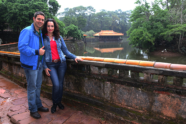Por la tarde visitamos la Tumba Real de Tu Duc, que cuenta con una superficie de 12 hectáreas, donde contrasta la construcción de pabellones, palacios con la naturaleza y vegetación del lugar. Este sitio fue utilizado como palacio de verano y sitio de descanso del emperador Tuc Duc. Fue construido durante 1864 y 1867 por orden del mismo Tu Duc. Dicen que el emperador Tu Duc en realidad no está enterrado aquí, para evitar saqueos. Realmente hoy en día no se sabe donde descansa el cuerpo de Tu Duc. También se puede observar la Tumba de Le Thien Anh y la del sobrino e hijo adoptivo Kien Phuc. Tu Duc fue el emperador que más tiempo reino en Vietnam, desde 1848 a 1883. Se dice que no pudo tener hijos por haber quedado estéril tras contraer la viruela. Abierto de 7:00 h a 11:30 h por la tarde de 13:30 h a 17:30 h La entrada nos costó 80.000 dongs por persona (3,30 € aproximadamente).