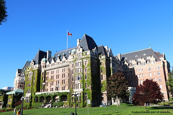 Tomamos unas fotos del emblemático Hotel The Fairmont Empress. ¿Verdad, qué es precioso?, bueno chico, simplemente lo contemplamos. Nuestro hotel elegido en la ciudad era mucho más económico y básico que este. El Marriott Inner Harbour, se encuentra en 721 Government St, Victoria, BC V8W 1W5, Canadá.