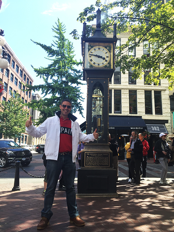 Visitamos Gastown, es un barrio muy animado de la ciudad donde encontramos tiendas, bares, restaurantes, cafeterías, etc. También en el lugar se encuentra el Reloj de Vapor Gastown, este se ha convertido en símbolo de la ciudad. Solo hay unos pocos hoy en día en funcionamiento, la gran mayoría de estos fueron diseñados y construido por Raymond Saunders, un canadiense. Localizado en 305 Water St, Vancouver, BC V6B 1B9, Canadá.