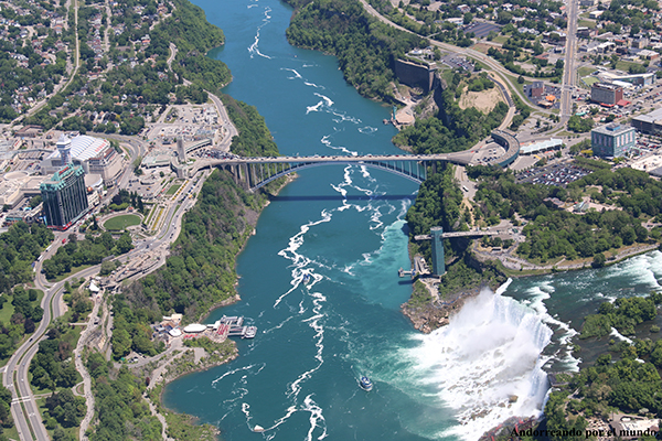 Las Cataratas del Niágara, son unas cascadas ubicadas en el río Niágara, entre la frontera de los Estados Unidos y Canadá, situadas a unos 236 metros sobre el nivel del mar. Cuenta aproximadamente con una caída de 64 metros de altura, formada por tres cataratas. Las vamos a nombrar desde la más grande hasta la más pequeña: