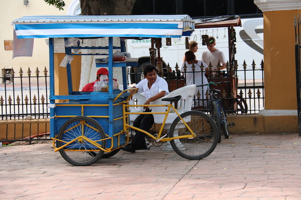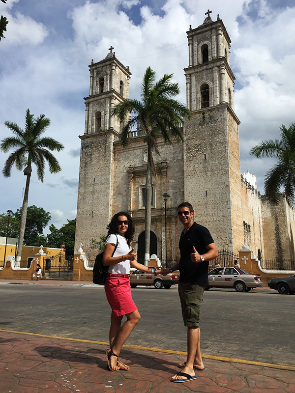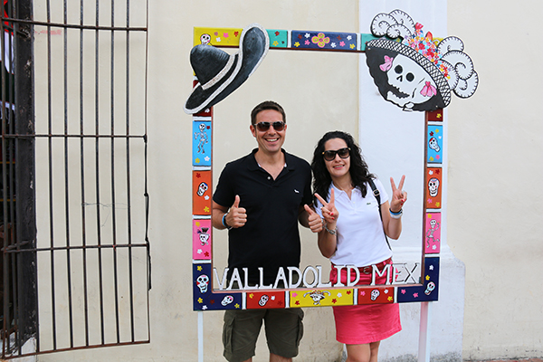 Por la tarde nos fuimos a Valladolid, es una ciudad colonial ubicada entre Mérida y Cancún. Visitamos en el lugar el Parque Francisco Cantón, donde hay en el centro una fuente con la figura de una mujer con un cántaro. También observamos unas sillas blancas de obra colocadas de dos en dos, paralelas, dicen que aquí los enamorados pasaban ratos con sus parejas hablando.