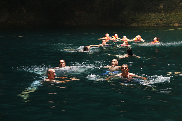 Por la tarde fuimos al Cenote Sac Actún. La verdad es que la carretera para llegar al lugar no es muy buena, se encuentra alejada, pero eso no era un problema, llevamos a Umberto que él se conocía la zona. El cenote Sac Actún fue descubierto en el año 1987, con una profundidad de 101,2 metros, con una longitud total de recorrido subterráneo de 319 kilómetros. Sac Actún significa en vocabulario maya “sistema cueva blanca”. Este está formado por dos zonas independientes en forma circular unidos por una cueva. El sitio presenta un buen estado de conservación y cuenta con iluminación en algunas zonas del trayecto, por lo que resulta más fácil y visible el lugar. En algunas franjas pudimos ver peces y algunas pequeñas tortugas. Compramos la entrada en el mismo lugar, que nos costó 350 pesos mexicanos por persona (16,08 € aproximadamente) nos incluía entrada, visita guiada de 1 h con guía y el equipamiento (chaleco salvavidas, gafas y tubo). La página web: http://www.cenotessacactun.com Volvimos al hotel para cenar, descansar, que al día siguiente seguíamos haciendo visitas.