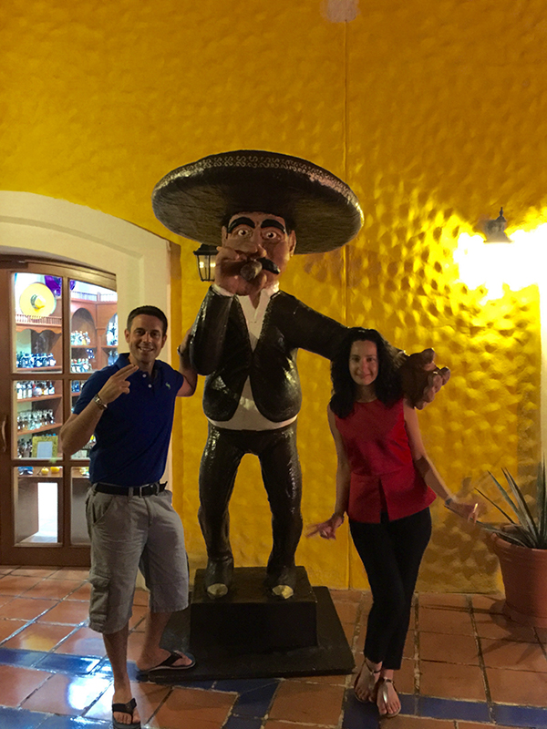 Tomamos un refresco en un bar local en la zona mientras nuestros amigos estaban realizando unas compras. Volvimos al hotel para ducharnos y bajar a cenar, por la noche había un espectáculo de la fiesta mexicana, donde hacían bailes con los trajes tradicionales de las diferentes regiones del país. Asistimos un rato al espectáculo, ya nosotros lo conocíamos. Nos fuimos a descansar a la habitación.