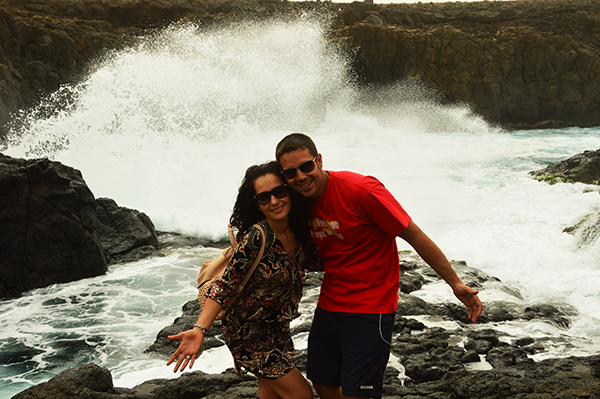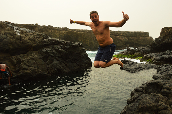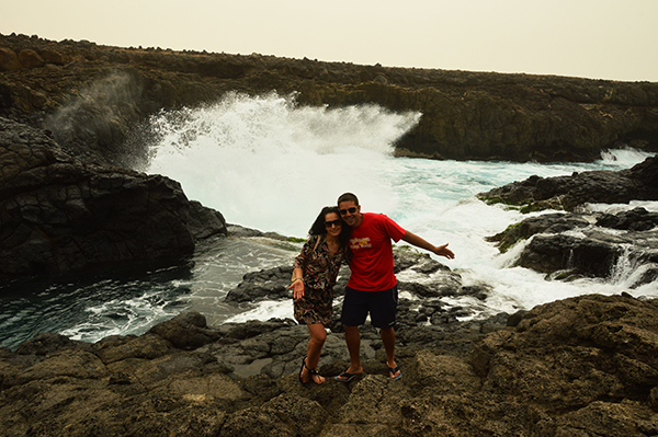 Subimos en una camiseta en la parte trasera (descubierta) para desplazarnos al noroeste de la Isla de la Sal hasta Buracona, donde hay una piscina de agua natural entre rocas volcánicas. Aquí tuvimos tiempo libre para darnos un baño y tomar algunas fotografías del lugar.