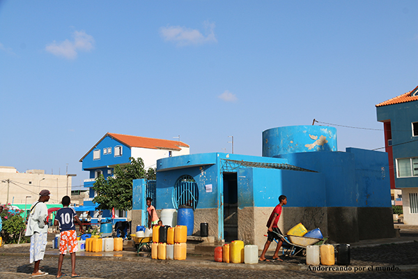 Seguimos andorreando por las calles hasta llegar a los depósitos públicos, donde pudimos observar cómo los caboverdianos cada día van hasta este lugar para recoger el agua potable y transportarla hasta sus casas.