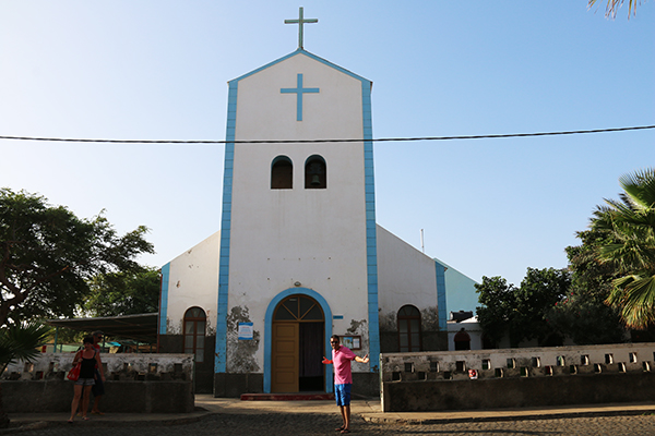 Luego, visitamos Pedra de Lume, un pueblo al noroeste de la isla donde se encuentran las Salinas de Pedra de Lume, ubicadas en el cráter de un volcán, 3 metros por debajo del nivel del mar. Las salinas tuvieron un papel importante en la economía local hasta mediados del siglo XX. Actualmente, ya no tienen actividad, hoy en día están abiertas al público para disfrutar de baños de yodo, ricos minerales. Fueron declaradas Patrimonio de la Humanidad por la Unesco desde el 2004. Apreciamos lo que queda de las antiguas instalaciones que transportaban la sal hasta el puerto. La entrada a las salinas cuesta 5 € por persona. Para ducharte y quitarte la sal cobran 1 € por persona. Allí pensarás que te encuentras en el mar Muerto, tu cuerpo flotará. Fue una agradable experiencia.