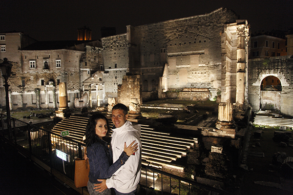 Otra vez comenzó a llover fuerte, nos tuvimos que resguardar en un portal de una vivienda hasta que disminuyó la intensidad de la lluvia. Decidimos bajar para contemplar el Coliseo Romano, iluminado por la noche. La lluvia seguía, las calles estaban desiertas, no había movimiento en la ciudad. Fue impresionante contemplar tal maravilla iluminada, aunque nosotros ya lo habíamos visto y visitado cuando estuvimos en Roma en el verano del 2009 durante un crucero que hicimos por el Mediterráneo y pasamos un día completo en la ciudad. Decidimos esperar a que la lluvia nos diera una tregua para tomar una fotografía del lugar. Pues nada, nos dieron las 2:00 h de la madrugada, pero conseguimos poder sacar esta magnífica foto sin gente ni tránsito de coches.