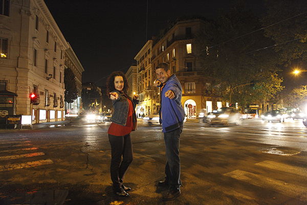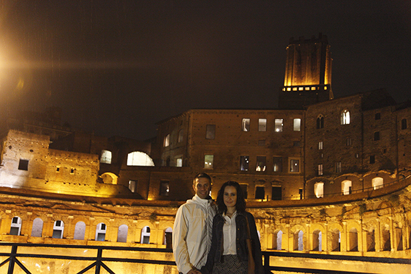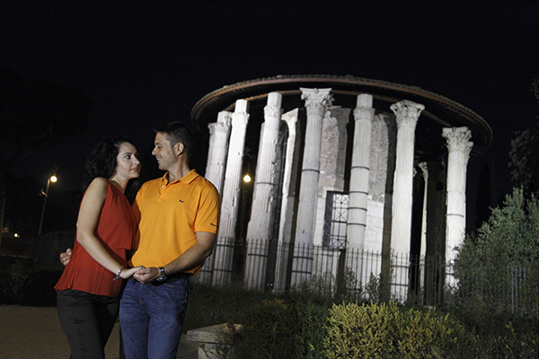 Otra vez comenzó a llover fuerte, nos tuvimos que resguardar en un portal de una vivienda hasta que disminuyó la intensidad de la lluvia. Decidimos bajar para contemplar el Coliseo Romano, iluminado por la noche. La lluvia seguía, las calles estaban desiertas, no había movimiento en la ciudad. Fue impresionante contemplar tal maravilla iluminada, aunque nosotros ya lo habíamos visto y visitado cuando estuvimos en Roma en el verano del 2009 durante un crucero que hicimos por el Mediterráneo y pasamos un día completo en la ciudad. Decidimos esperar a que la lluvia nos diera una tregua para tomar una fotografía del lugar. Pues nada, nos dieron las 2:00 h de la madrugada, pero conseguimos poder sacar esta magnífica foto sin gente ni tránsito de coches.