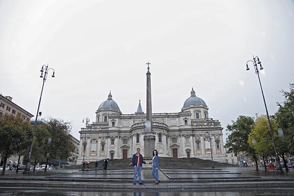La ciudad nos recibió con lluvia y el pronóstico era para todo el día. Decidimos salir a explorar la ciudad. Comenzamos contemplando la Plaza de Santa María Maggiore donde tomamos algunas fotografías.