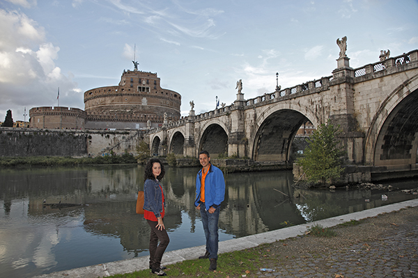 Nos fuimos al Puente Vittorio Emanuele, donde tomamos estas magníficas fotografías con el fondo del Castillo Sant´Angelo.