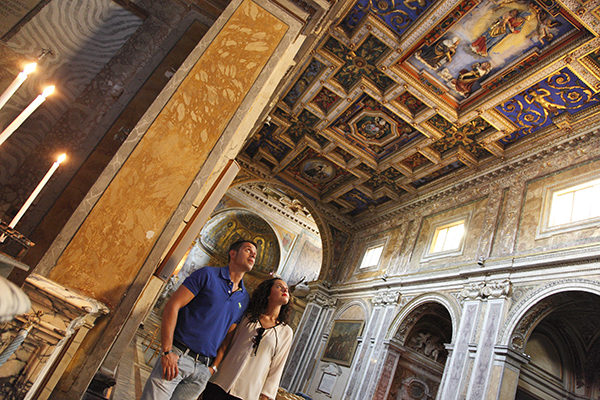 La Basílica de Santa María Nova o llamada Francesca Romana, construida en el siglo IX. Si algo nos llamó la atención de ella son las pinturas que se pueden observar en el interior de su techo. Horario de visitas de lunes a domingo de 7:00 h a 19:00 h. La entrada es gratuita. Se encuentra junto al Foro Romano.