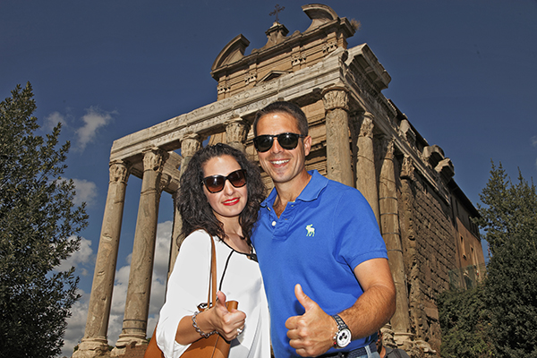 Además, encontramos un gran número de templos como Rómulo, Saturno, Vesta, Venus, etc. Una vez terminada la vista, que por cierto no nos dimos cuenta y eran casi las 15:30 h de la tarde, pasamos por el Arco Di Costantino, construido en el año 315, por el emperador Constantino I el Grande, por su victoria en la batalla del Puente Milvio. Tomamos unas fotografías.