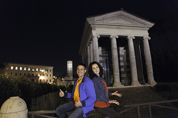 Llegamos al Forum Boarium, en este lugar se realizaba el mercado de animales en la antigua Roma. En la actualidad se conservan el Templo de Hércules y Portuno. El Templo de Hércules, tiene forma circular, rodeado de columnas en mármol de estilo griego.