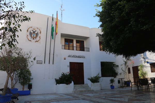 El Ayuntamiento de Mojácar contiene el escudo de la ciudad en su fachada, además en el centro de la plaza se sitúa un árbol centenario, un ficus benjamín, regalado por un emigrante traído de las Américas. Está en la Plaza del Ayuntamiento.