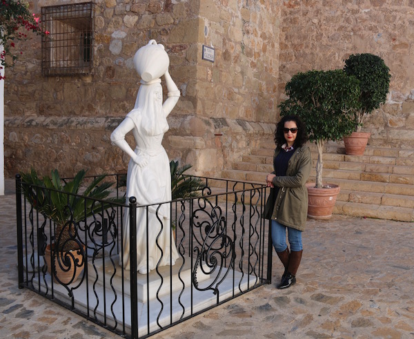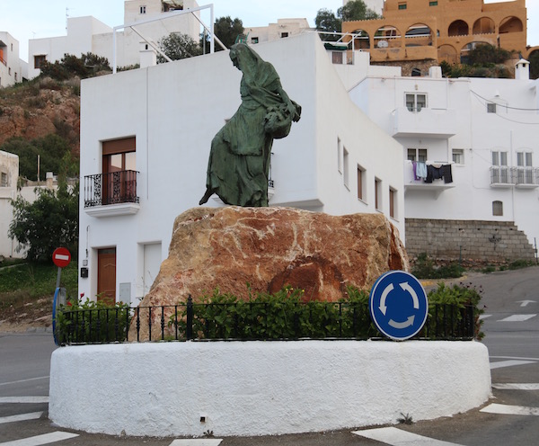 La Estatua de la Mojáquera es una figura de una mujer vestida con el traje típico de antaño. Lleva un pañuelo árabe, el cual cubre parte de su rostro y en su cabeza soporta un cántaro, utilizado en aquella época para transportar el agua a las casas. Escultura esculpida en mármol blanco de Macael, por la escultora María Ángeles Lázaro Guil en el año 1989. Está situada enfrente de la iglesia de Santa María.