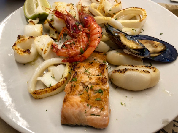 Estuvimos almorzando en el Restaurante El Anzuelo, pedimos como entrante un variado de pescado a la plancha y de plato principal, una paella de marisco para dos personas (por encargo y un mínimo para dos personas) de bebida, una coca cola y un nestea. Pagamos un total de 49,60 €. El horario de apertura de lunes a domingos de 12:00 h a 00:00 h. Ofrece comida española, pescados y mariscos. Aquí os dejamos el teléfono de contacto: (+34)950283401. La dirección es Paseo del Mediterráneo nº. 277.