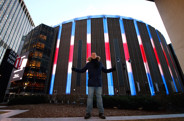 Contemplamos desde el exterior Madison Square Garden, considerado el estadio deportivo más famoso de Nueva York. Está compuesto de cinco platas con un aforo para más de 20000 personas. En él se acogen partidos de baloncesto, hockey sobre hielo, boxeo, etc. Se puede visitar en su interior, en visitas guiadas de 11:00 h a 15:00 h La entrada tiene un coste de 26,95 dólares americanos por persona (24,55 € aproximadamente). La web: https://www.msg.com/madison-square-garden?cmp=van_thegarden La dirección es Penn Plaza 4.