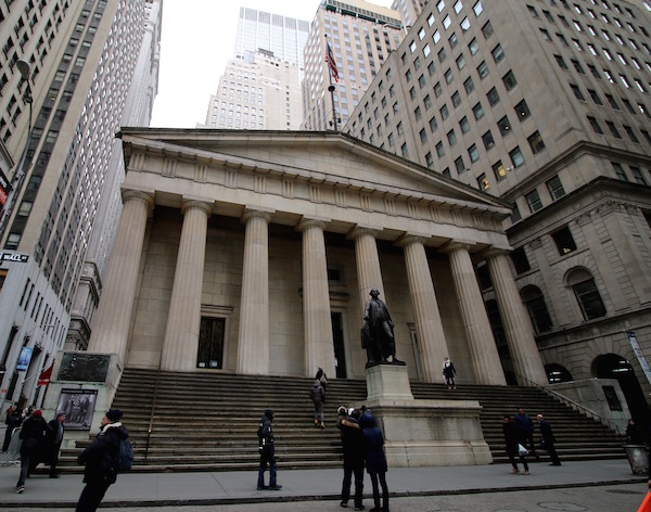 Wall Street, es la franja del distrito financiero de la ciudad, en ella se encuentran los edificios como: la Bolsa y la Reserva Federal. Pudimos contemplar el ambiente de ejecutivos con sus maletines y trajes incorporándose al trabajo. La mejor hora para visitarlo y ver el ambiente es de lunes a viernes en horario laboral. Dirección Broad Street 20.