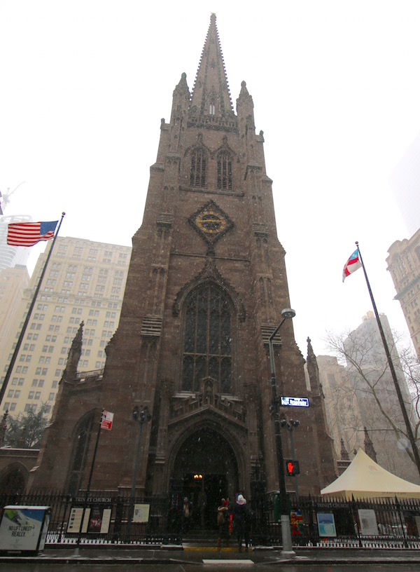 La Iglesia Trinity, templo que se comenzó a construir en el año 1696 para la comunidad anglicana, es de estilo neogótico. Al lado del templo se encuentra un cementerio. Horario de apertura todos los días de 8:00 h a 18:00 h La entrada es gratuita. Situado en el cruce de Wall Street con Broadway.