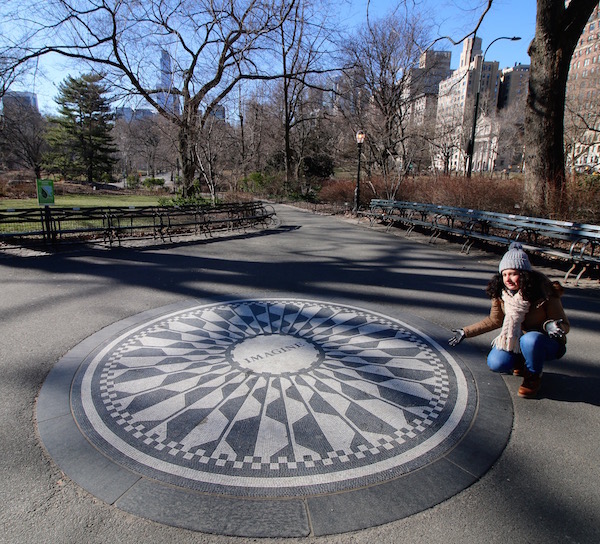 Desayunamos y nos desplazamos a Central Park, parque público, contiene 4 kilómetros de longitud y 800 metros de ancho. En él hay lagos artificiales, cascadas, pista de hielo, etc. La entrada es gratuita. Pudimos contemplar los lagos del parque que estaban congelados, los pobres patos estaban sobre el hielo como si fuesen unos pingüinos. No había gente, pero es que estamos locos. Con el frío que hacía ¿Quién iba a salir? Pudimos contemplar la Strawberry Fields, es un homenaje al componente de The Beatles John Lennon, que fue asesinado muy próximo al edificio de Dakota por Mark David Chapman, en el año 1980. Os podemos decir que no había nadie en el lugar, la otra vez que lo visitamos había una gran cantidad de gente. El horario de apertura de 6:00 h a 1:00 h El parque se encuentra entre la Quinta Avenida y la Octava Avenida.