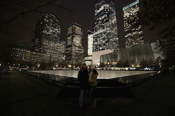 Contemplamos el lugar donde estaban las Torres Gemelas, hoy en día se encuentran dos grandes piscinas con el nombre de las víctimas del ataque del 11 septiembre. Es un lugar muy triste.