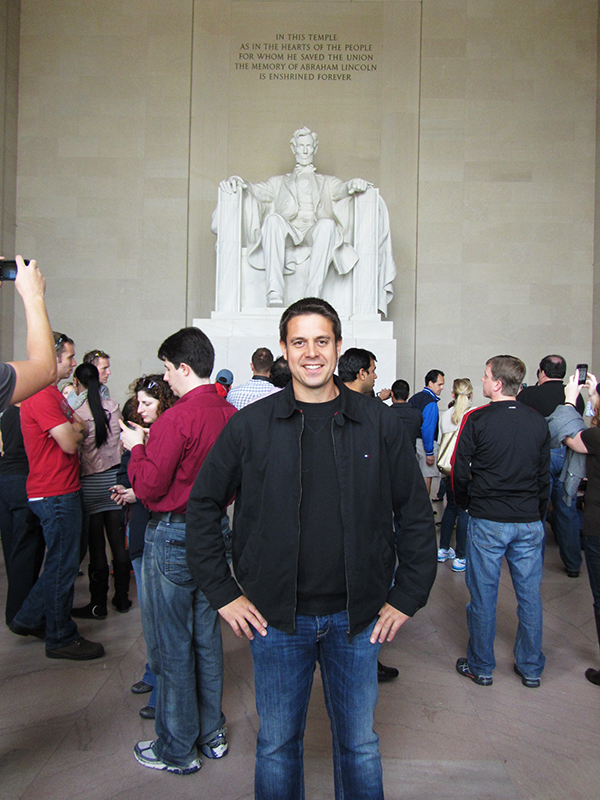 Llegamos a National Mall, donde se encuentra el Monumento a Lincoln, monumento conmemorativo creado en honor a la memoria del Presidente Abraham Lincoln. Fue el décimo sexto presidente de los Estados Unidos. Luchó por los derechos de los más desfavorecidos. Jugó un papel muy importante en la historia de los Estados Unidos. Su escultura se sitúa delante de un edificio en forma de Templo Griego Dórico. Se puede visitar los sitios de Nacional Mall y Memorial de Parques 24 horas del día.
