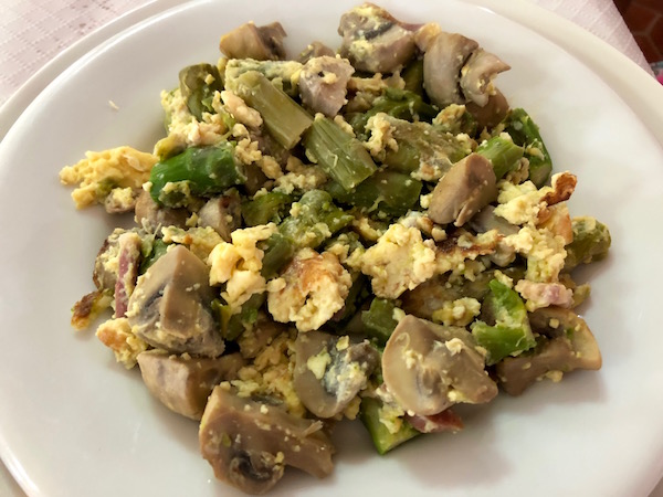 - Salteado ajetes, huevo y champiñones, El Fogón.