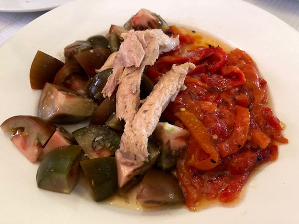 - Pimientos asados con atún y tomate, Montellano Asador Restaurante.