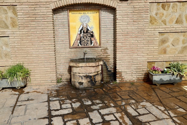 El Pilar del Chocho es un manantial que contiene un solo chorro pegado en la pared con base rectangular.