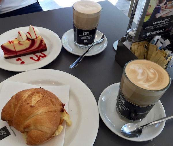 Nos despertamos antes de la hora que habíamos puesto para que sonara el despertador, nos arreglamos y salimos a descubrir la ciudad. ¡Perth nos esperaba! Desayunamos en la primera cafetería que nos encontramos al salir del hotel, teníamos un hambre. Nos tomamos un delicioso café con leche, con una porción de tarta y un croissant. Todo estaba delicioso, pero el precio no tenía nada que ver con Asia.