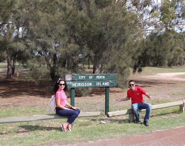 Cruzamos el puente para adentrarnos en la Heirisson Island, es una isla de 285600 m² en el río Swan. Hoy en día este lugar es una reserva natural, cuenta con un sendero de 2 km. Aquí encontramos a gente paseando, haciendo deporte, etc.